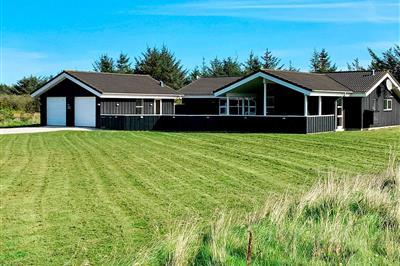 4,6Moderne sommerhus med spabad og saunabeliggende på stor naturgrund ved Grønhøj Strand. Her findes Nordeuropas allerbedste badestrande, der strækker sig milevidt med fint, hvidt sand og høje klitter. Sommerhuset er moderne indrettet og er både lyst,