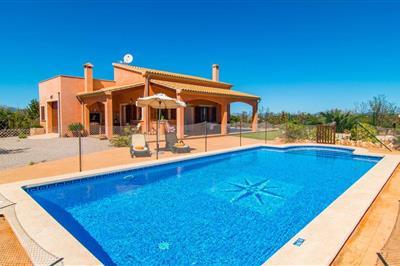 4,4Villa i Santa Margalida med Privat Pool Bolig: De buitenkant van het huis is prachtig, de tuinhoekjes geven kleur aan het huis. Het chloorzwembad is privé en meet 4 x 6 m met een minimale en maximale diepte van 1,6 m. Het terras van 25 m2 is ingericht met