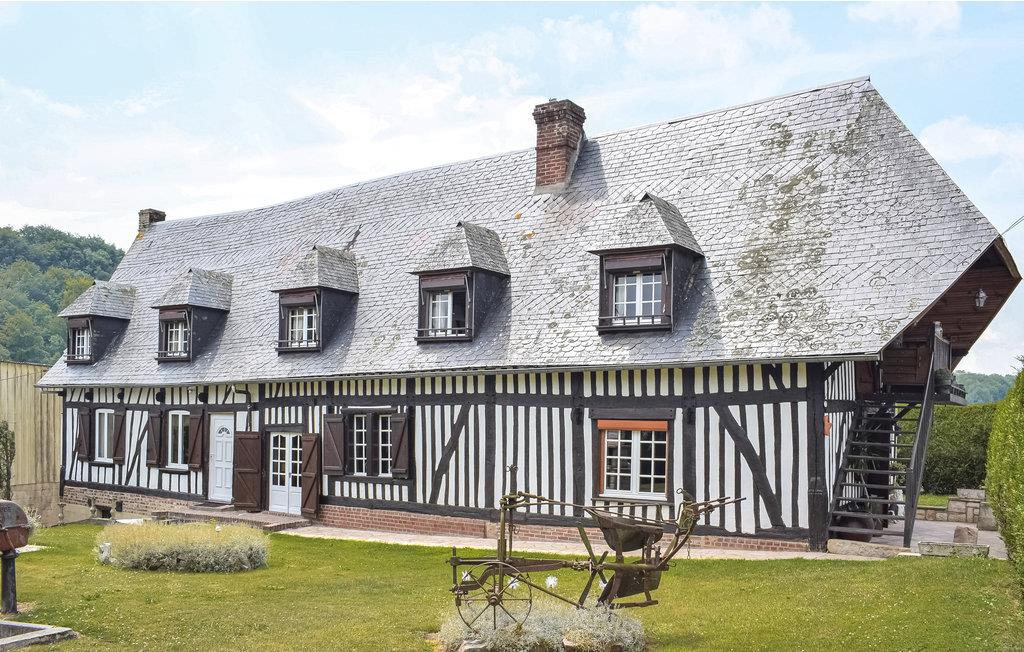 4,2Landhus i Normandiet nær Étretat Bolig: Traditionelt normannisk landsted fra det 17. århundrede. Under renoveringen blev autentiske elementer som gamle klinker, træbjælkelofter eller natursten kombineret med moderne udstyr i køkken og badeværelser. På