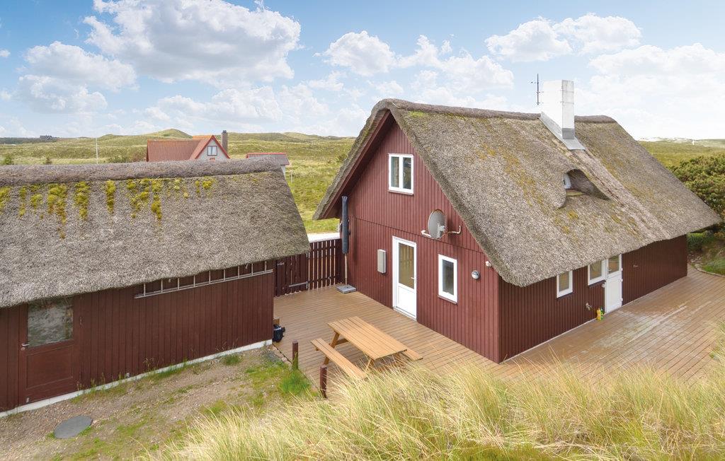 Nyd panoramaudsigten over klitterne og fjorden fra dette charmerende stråtækte feriehus. Tilbring en afslappende ferie i jeres indbydende feriehus, der på harmonisk vis kombinerer natur, ro og atmosfære. Huset byder på en betagende udsigt over det