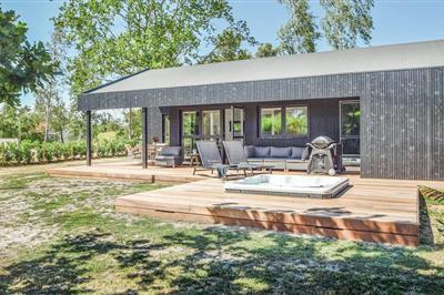 4,2Glæd jer til at omgive jer med moderne design og maksimal komfort i dette fantastiske sommerhus med stort spabad. Der er lagt op til nogle forrygende feriedage i dette arkitekttegnede sommerhus, hvor ingen detaljer er tilfældige. Den rummelige lyse stue