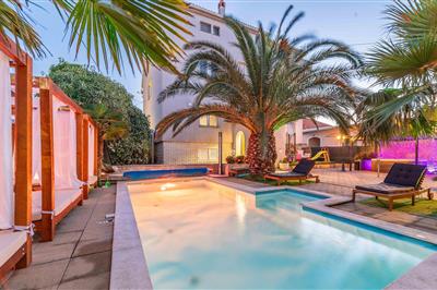 5,0I byen Sukošan, ikke langt fra kiesstranden, ligger dette vidunderlige feriehus. Det rummer fire soveværelser, tre badeværelser, en stue med køkken og en overdækket terrasse, hvor I kan hygge jer sammen med god mad fra grillen. Ved siden af poolen står den