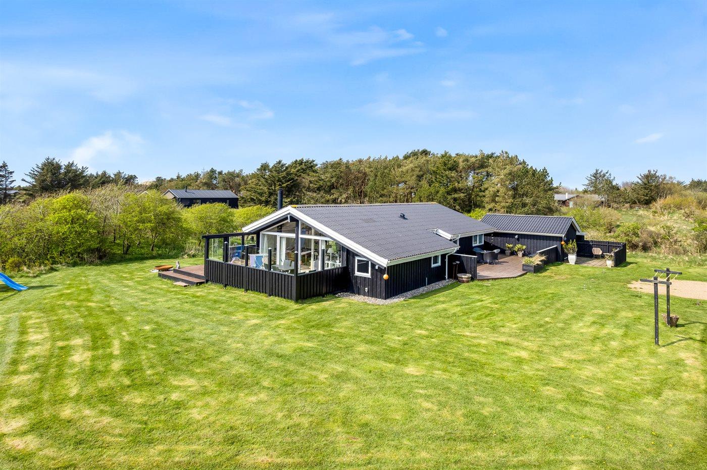 3,0Førsteklasses sommerhus beliggende nær Vesterhavet på en meget stor grund i et enestående, let kuperet hede- og klitlandskab med spredt beplantning. Indvendigt fremstår huset med alle moderne faciliteter og bekvemmeligheder. Der er gulvvarme i hele huset som