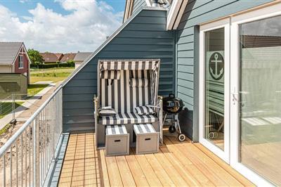 4,0Velkommen til det moderne feriehus "Heimathafen". Huset byder jer velkommen ind i den lille gang, hvorfra I kommer ind i soveværelset i stueetagen, badeværelset med sauna og den moderne, komfortabelt møblerede stue. Køkkenet lader intet tilbage at ønske og