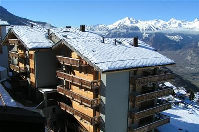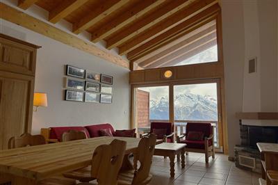 4,5Lejlighed med udsigt over dalen i Veysonnaz Bolig: Denne fremragende lejlighed kan rumme op til 8 gæster og har en terrasse med en fantastisk udsigt over dalen. Den lyse stue har en sovesofa til to, en hyggelig pejs og kabel-tv samt gratis WiFi. Gæsterne