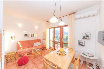 Indbydende, lys ferielejlighed i en lille rolig fiskerby. Lejligheden har en lys og behagelig atmosfære, så her kan I finde jer godt til rette med jeres familie og nyde jeres ferie i Kroatien. Fra stuen er der udgang til en stor balkon med havudsigt, hvor I