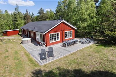 3,8Sommerhus beliggende på en 3000 m² stor naturgrund. Sommerhuset er renoveret i 2020 og byder bl.a. på udendørs swimmingpool opvarmet med luft til vand. Bemærk: Swimmingpool kan kun benyttes fra 1/5 - 30/9. Herudover er der spabad. Der er stort aktivitetshus