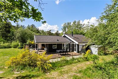 4,5Glæd jer til en dejlig ferie i et komfortabelt feriehus ikke langt fra stranden. Velkommen til dette indbydende feriehus med rustik charme på en dejlig ugeneret grund omgivet af frodig natur. De rustikke materialer tilfører huset et varmt udtryk, og den åbne
