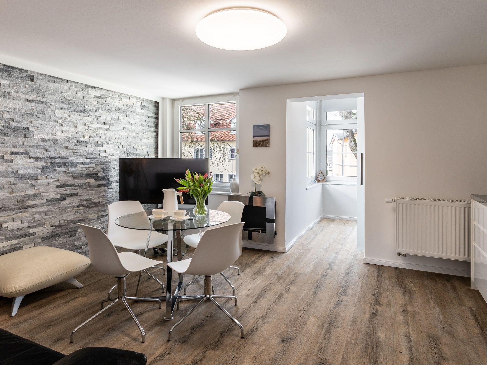 4,0Den komfortable ferielejlighed har to boligetager og ligger i udkanten af byen i et flerfamiliehus med i alt fire boligenheder. Uhindret udsigt over Achterwasser, Østersøstranden er omkring 1,5 km væk, diget på Achterwasser er omkring 500 m væk. Lejligheden