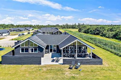 4,7Stort, velindrettet sommerhus ved Houstrup Strand med masser af spændende detaljer og aktivitetsmuligheder. Poolafdelingen har både stor swimmingpool, vandrutschebane, stort indbygget spabad og sauna. Swimmingpoolen er på 18 m² og med rutschebane til børnene.