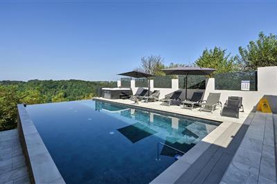 Oplev Kroatiens skønhed med et luksus sommerhus! Nyd egen pool, spa og eventyrlige omgivelser. Perfekt til romantik, afslapning og nye eventyr.