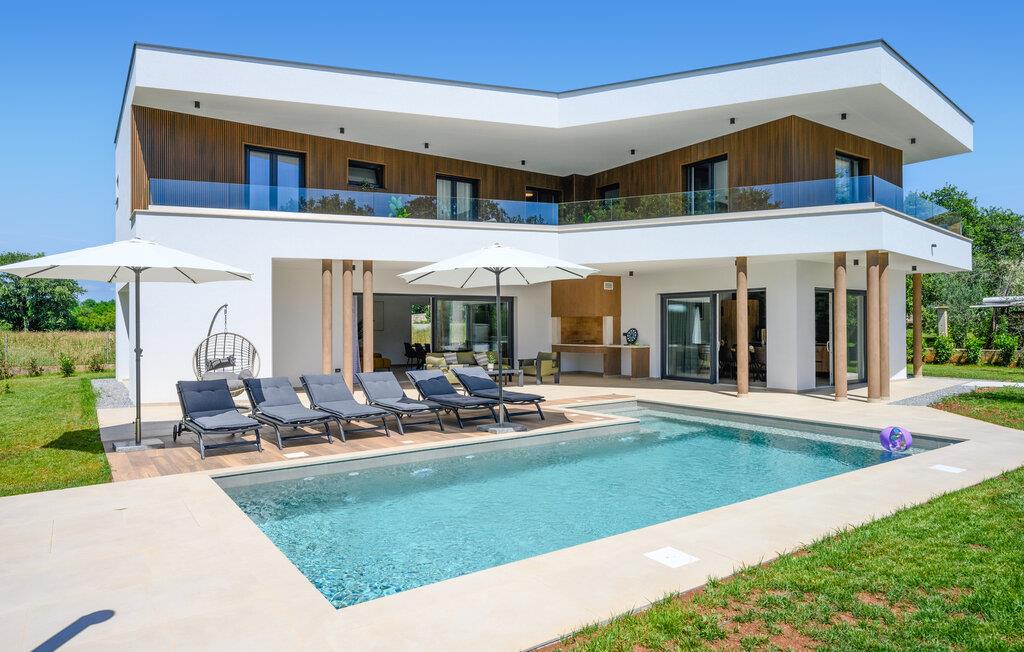5,0Dette moderne dobbelthus med swimmingpool byder jer velkommen uden for Pula. Nyd en afslappende ferie med familien i dette skønne feriehus. Vil I rejse med en familie, I er venner med, kan I også booke nabohuset. Huset vil inspirere jer med sin moderne