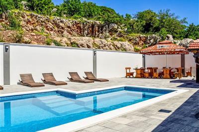 Dejligt feriehus i den lille by Cesarica. Dette smukke feriehus er designet til en uforglemmelig ferie med familien eller venner. I stueetagen er der et værelse og en rummelig stue, der fører ud til en overdækket terrasse. På øverste etage er der tre
