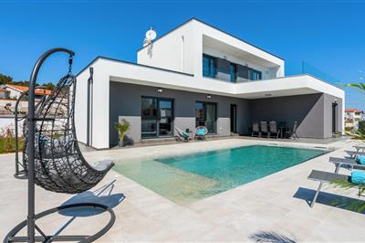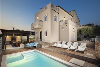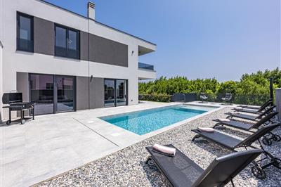 4,7Denne ferievilla med pool, 250 m fra stranden, ligger i den lille fiskerby Premantura, der grænser op mod Naturpark Kap Kamenjak. Huset fortryller med sin særlige arkitektur. Det er dejligt rummeligt både ude og inde, til en afslappe og indholdsrig ferie. I