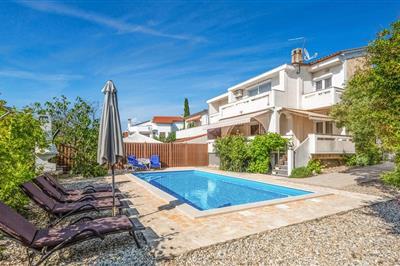 5,0Her venter der jer et hyggeligt feriehus med pool, i et roligt boligkvarter i byen Punat. Indvendigt består huset i stueplan af køkkenalrum, et badeværelse samt terrasse, mens der på første sal ligger tre soveværelser med to badebaværelser og to altaner. På