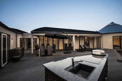 Skøn terrasse ved lækkert luksushusUdover at være store, byde på en masse forskellige faciliteter og… ja, bare være dét ekstra luksus, er mange af vores luksushuse på andre måder noget helt specielt. Ved mange af vores luksus sommerhuse er der tænkt over de mindste detaljer, hvilket giver et unikt indtryk af luksus huset. Poolen i de store poolhuse er ofte lavet til, at alle gæster kan bade og have det sjovt på samme tid.