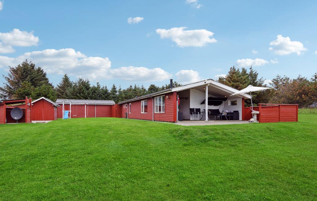 3,9I bunden af dette skønne, lukkede område finder I dette dejlige feriehus på en fredfyldt plet, som byder den store familie velkommen med masser af plads i rolige omgivelser. Det store, lyse køkken/alrum samt stuen ligger i forlængelse af hinanden og er som
