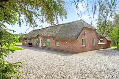 Illeborgvej 35 Fjand. Kun 1200 meter fra den jyske vestkyst ligger dette imponerende feriehus, opført på en 5700 m² stor naturgrund med masser af plads til både afslapning og aktiviteter for hele familien. Huset har 8 soveværelser, 4 badeværelser og 4