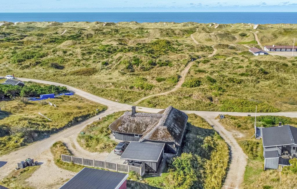 4,3Pragtfuldt feriehus beliggende i yderste klitrække på en kuperet klitgrund meget tæt på Vesterhavet. Den kunstnerisk dekorerede poolafdeling byder på en stor swimmingpool, spabad samt adgang til sauna. I poolafdelingen med tilhørende badeværelse er der