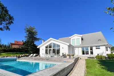 Sus, dus og masser af komfort er, hvad der venter familien i dette lækre hus med pool, spa og sauna. Velkommen til dette luksushus, der ligger i skønne omgivelser syd for Borås, og hvor I får en fantastisk base for en ferie med den udvidede familie eller en