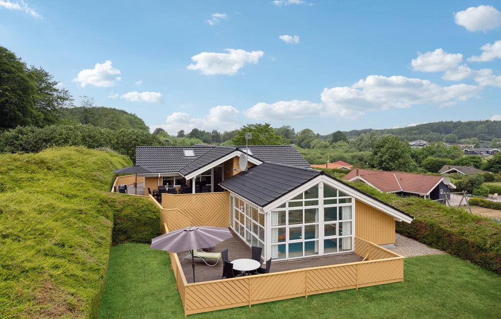 4,4I feriehusområdet i Spodsbjerg ligger dette dejlige feriehus med indendørs swimmingpool. Fra den store naturgrund er der kun 150 m til vandet. Huset er praktisk indrettet og indeholder mange faciliteter. Der er tre soveværelser i stueplan samt to soveværelser