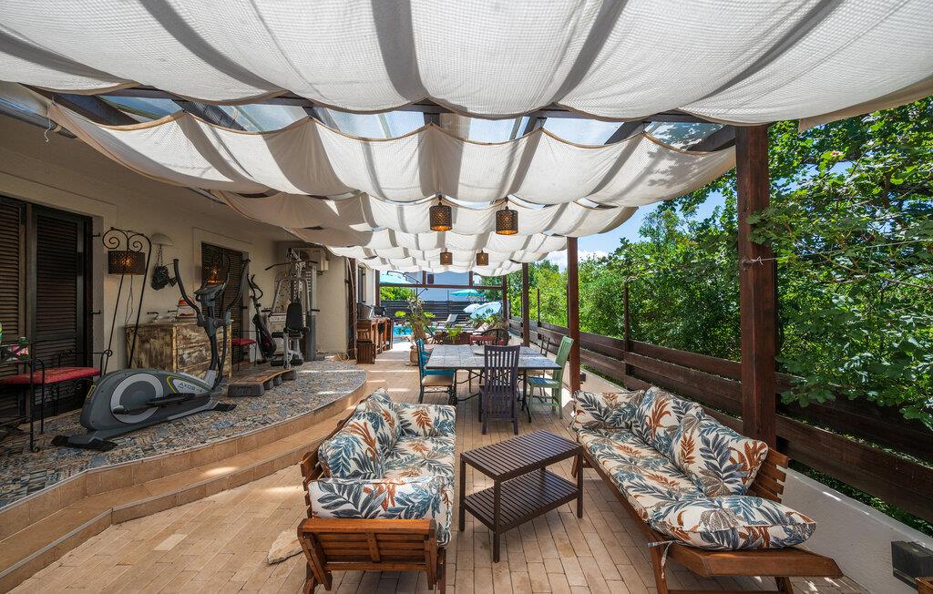 Dette moderne indrettede feriehus i Barbariga er indrettet med god smag. Huset er fordelt på to etager, stueplan og første sal, der er forbundet med en indre trappe. Til begge etager hører terrasser. Grunden er indhegnet, så her kan jeres børn trygt lege og