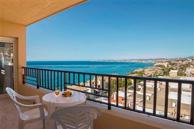 Glæd jer til en romantisk og solrig ferie for to i denne lille og hyggelige lejlighed med havudsigt og fælles pool. I denne lejlighed finder I en herlig base for en skøn parferie i det spanske. Lejligheden byder på enkel komfort, en dejlig altan, en