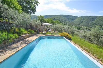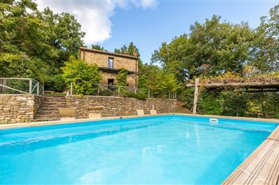 3,0Fantastisk landsted tæt på naturen i bjergene nord for Trasimenosøen. Glæd jer til ren idyl i dette karakterfulde gamle hus omgivet af grønne områder. Hvad enten det er i det hyggeligt og autentisk indrettede interiør, foran hoveddøren eller ved poolen, som
