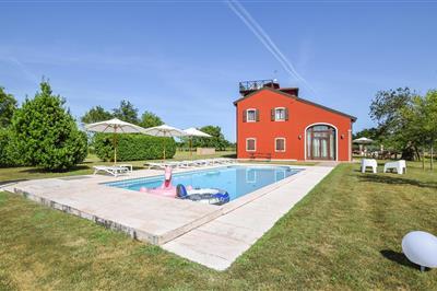 Fine ferielejligheder i et ældre renoveret landhus. 4 lejligheder er fordelt på 3 etager i et af de mest populære fiskeriområder i Venedig. Rundt om grunden strækker der sig 10 hektar skov og laguner, rige på ænder og fisk. På græsarealerne er der både