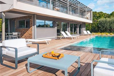 4,0Slap af i dette smukke feriehus med pool og smuk udsigt over landskabet. I dette store feriehus i Roquebrun får I en uforglemmelig ferie i stilfulde omgivelser. Den smagfulde indretning og den kærlige dekoration af rummene skaber en harmonisk atmosfære, hvor