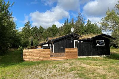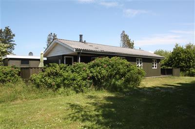 4,5Ældre delvis moderniseret fritidshus med stor græsgrund med gynge og sandkasse. Køkkenet har opvaskemaskine og mikroovn. I stuen er der DVD-afspiller, fjernsyn med parabol, radio og brændeovn. Der er barnestol og barneseng i huset. Der er tre soveværelser,
