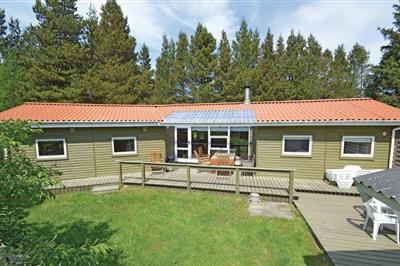 4,5Ældre delvis moderniseret fritidshus med stor græsgrund med gynge og sandkasse. Køkkenet har opvaskemaskine og mikroovn. I stuen er der DVD-afspiller, fjernsyn med parabol, radio og brændeovn. Der er barnestol og barneseng i huset. Der er tre soveværelser,