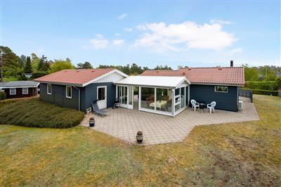 4,7Dette rummelige, velholdte og løbende moderniserede feriehus er højt beliggende i den nordlige del af det store sommerhusområde mellem Ebeltoft og Øer. Stor, nordvestvendt fliseterrasse med skøn udestue, hvor man kan nyde middagsmaden og udsigten uanset