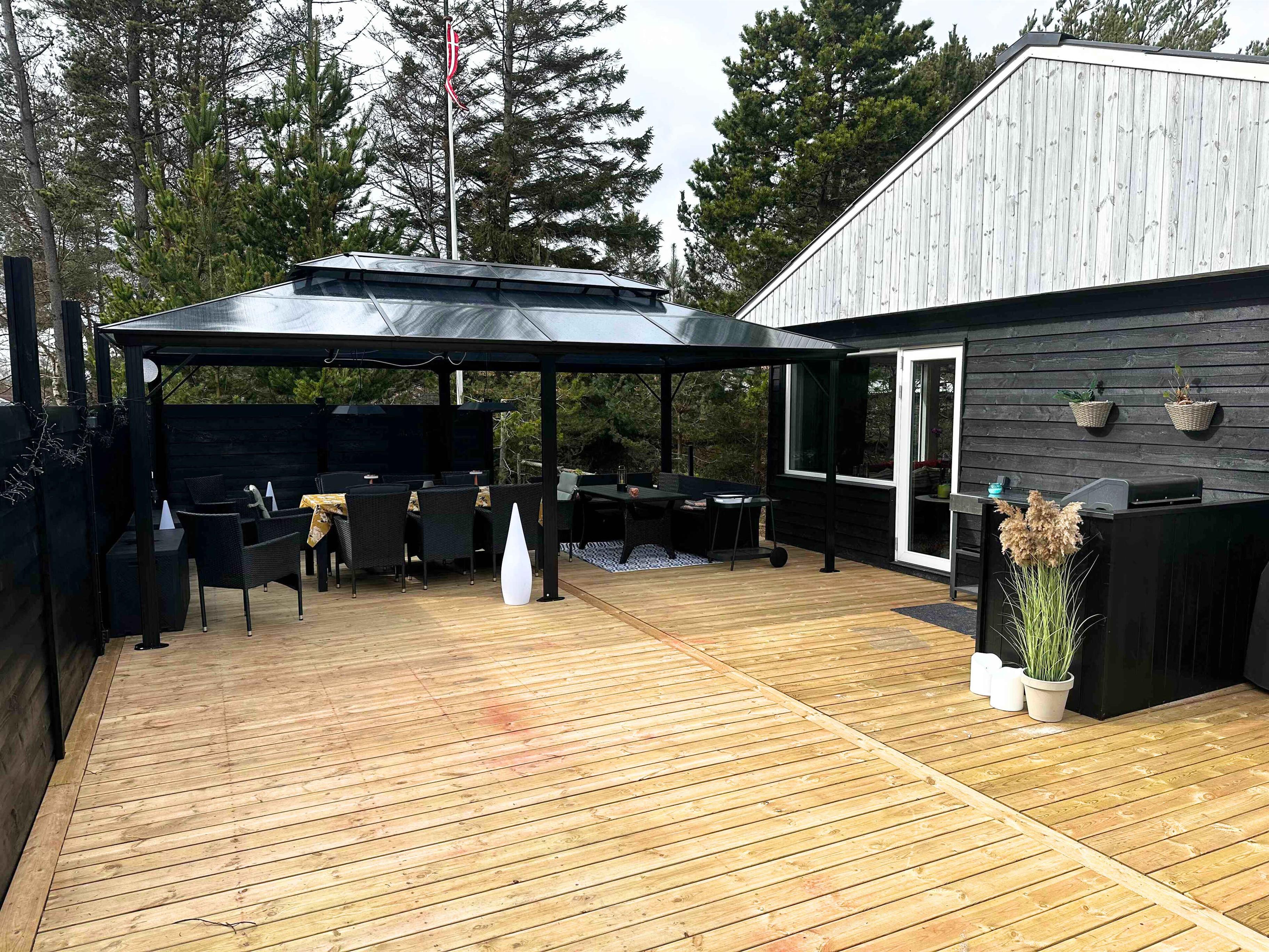 Information omkring ankomst bliver sendt som besked 4 dage før ankomst Hyggeligt sommerhus nær strand med stor terrasse Sommerhuset er solgt i sommeren 2025 og de nye ejere har fået etableret en ny stor terrasse på 140m2. Sommerhuset er stilfuld