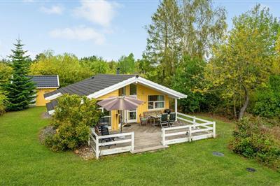 2,0Klassisk feriehus med køkken kombineret med spisestue og stue. I stuen er der med alkove og brændeovn. Desuden badeværelse og tre soveværelser. Til huset hører både en åben og overdækket terrasse. Huset ligger på en lukket naturgrund, og her er det tilladt at