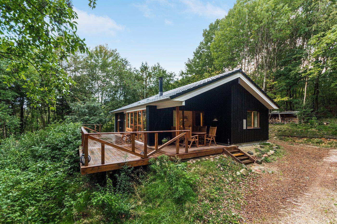 Nyt og rummeligt sommerhus beliggende i et mindre sommerhusområde udenfor Silkeborg. Huset ligger tilbagetrukket på en stor, lukket og kuperet grund med mange træer i naturskønne omgivelser. Indretning Sommerhuset egner sig til 6 personer. Ferieboligen er