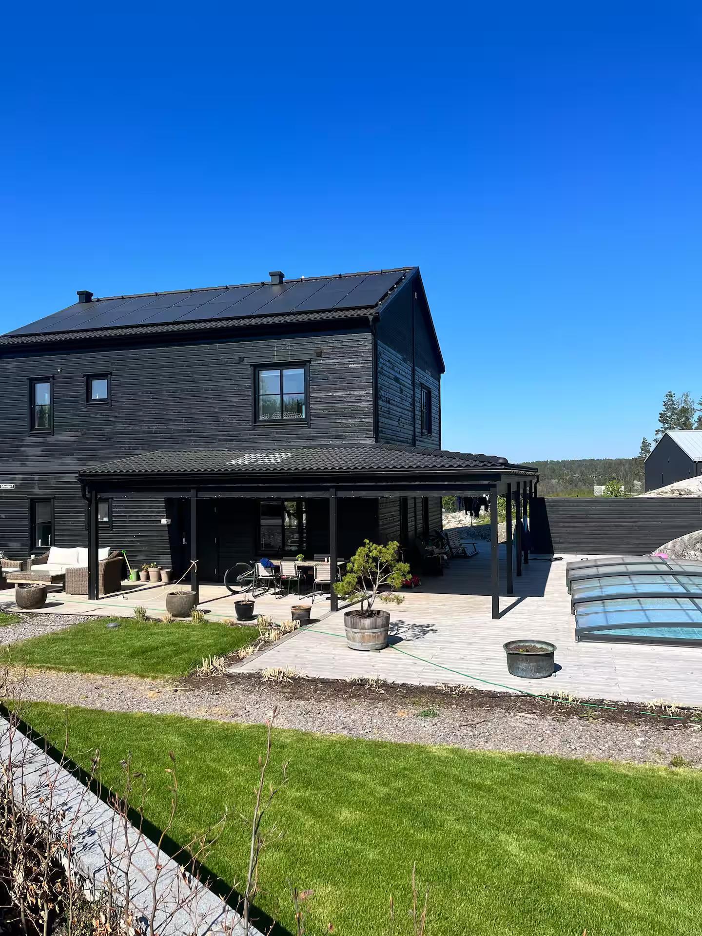 4,0Rummeligt sommerhus med sauna, vildmarksbad og panoramaudsigt. Dette skønne sommerhus ligger smukt nord for Gøteborg. Huset byder på et komfortabelt indrettet interiør og flere hyggekroge til rolige timer for jer selv eller med jeres kære. Saml jer rundt om