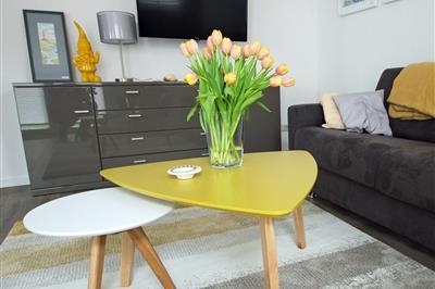4,0Ferielejlighed Zauberhexe i Braunlage Bolig: Den komfortabelt og moderne indrettede ferielejlighed har en terrasse, hvor I kan spise morgenmad med familien i sommermånederne og nyde solen. Den store stue med en behagelig sofa og spisebord indbyder til