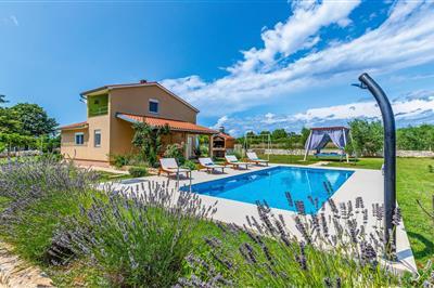 4,3Gør jeres velfortjente ferie til virkelighed i dette dejlige feriehus med pool på en grund på ca. 5500 m². Ejendommen ligger lidt afsides, tæt på landsbyen Šišan. Værelserne er fordelt over to etager, der er forbundet med ydertrapper. I stueetagen er der et