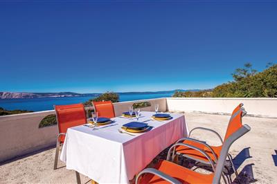 Nær Novi Vinodolski, i den lille kystby Klenovica, ligger denne rummelige ferielejlighed. Den ligger på første sal og er fordel på to ferielejligheder med hver sin indgang. De praktisk indrettede lejligheder deler en terrasse, hvor I kan nyde at sidde sammen