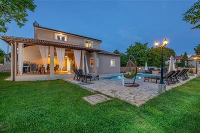 Dette komfortable feriehus med pool, ligger i den fredelige istriske by Krnica. Den nærmeste strand ligger i nabobyen fiskerlejet Luka Krnica. Boligen er enkelt og bekvemt indrettet og området indbyder til utallige aktiviteter, på cykelstier, ture i båd,