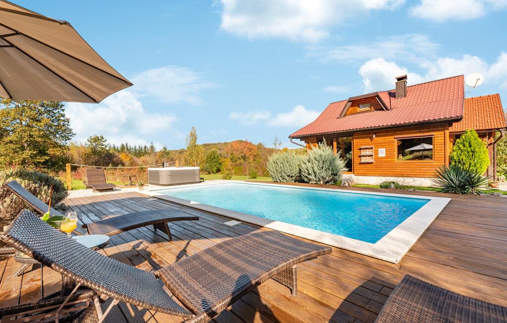 5,0Nyd ferien omgivet af naturen, i dette skønne feriehus af træ, med privat pool, der ligger omgivet af grønne plæner. Det er smagfuldt indrettet i lokal og traditionel stil, med brug af træ og sten. Ved poolen, der ligger ved siden af huset, er der en stor