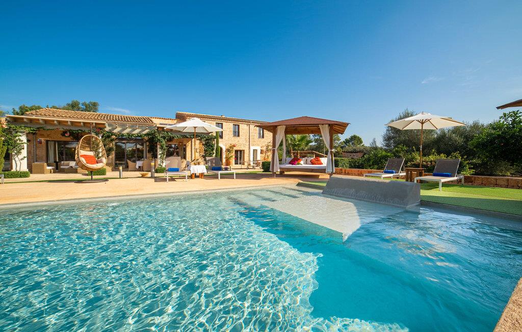 Villa "Florentina" er et luksuriøst feriehus i natursten på det sydlige Mallorca, tilgængeligt via en velholdt indkørsel. Denne rummelige villa kan rumme op til 10 gæster og har et hovedhus og to separate lejligheder. Ejendommen ligger i smukt anlagte haver