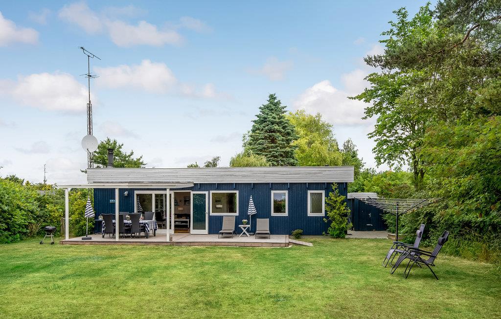 3,0Velbeliggende og godt indrettet feriehus med brændeovn og farve-tv. Huset har en dejlig sydvendt terrasse med havemøbler og grill. Det er indrettet med en stor stue med en pæn køkkenafdeling. På badeværelset er der gulvvarme. Huset ligger på en stor