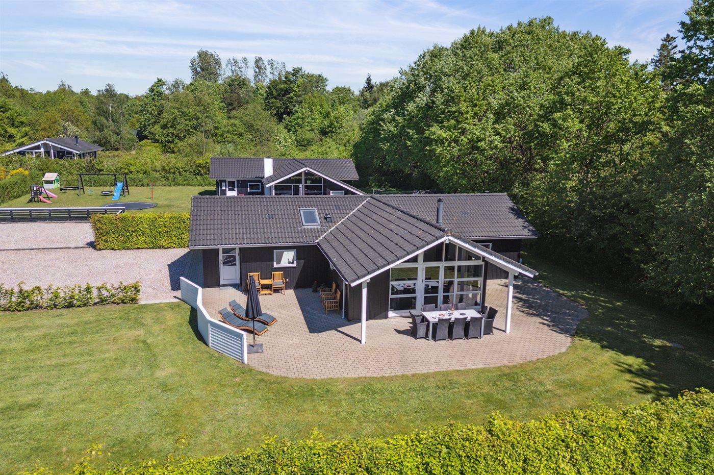 4,4Flot, stort sommerhus meget tæt på svømmehallen, fiskesøen og legepladsen. Her er god plads til hele familien - også udenfor på den store terrasse. Indretning Sommerhuset egner sig til 8 personer samt 1 barn op til 3 år. Ferieboligen er på 111 m² og er