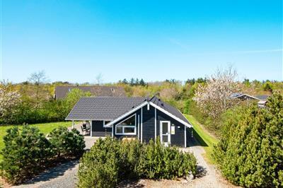 4,8I et godt beliggende feriehusområde ved Bork Havn finder I dette flotte kvalitetshus. Det er indrettet med blandt andet tre gode soverum, et badeværelse med spabad og sauna samt et stort og hyggeligt køkken/alrum med brændeovn og udgang til den sydvestvendte