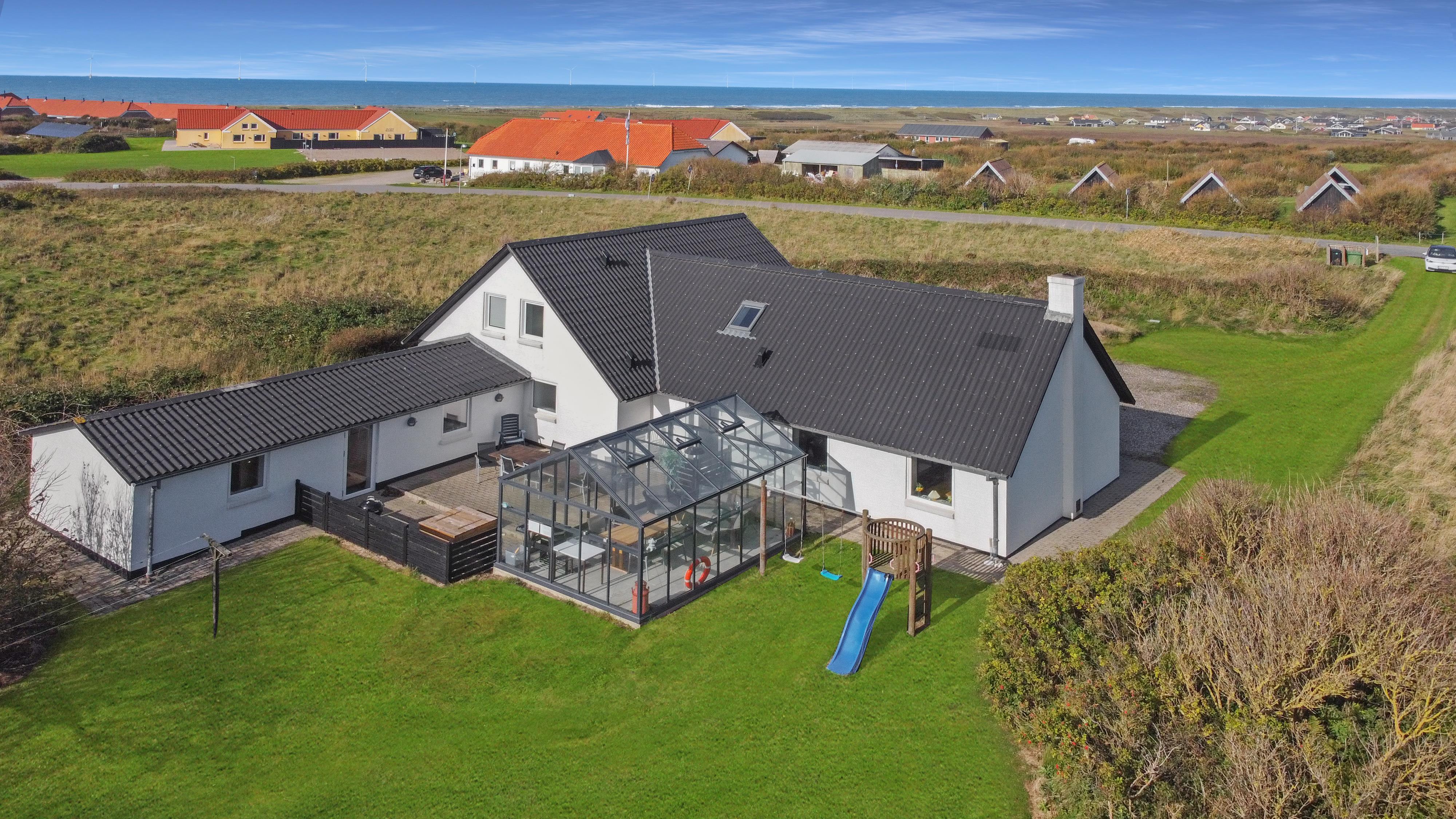 4,3Velbeliggende rækkehus med panoramaudsigt over Vesterhavet kun ca. 200 meter fra huset. Husets aktiviteter giver rig mulighed for mange timers underholdning både for børn og voksne. Der er bl.a. billard, bordtennis, airhockey, bordfodbold samt udendørs dart