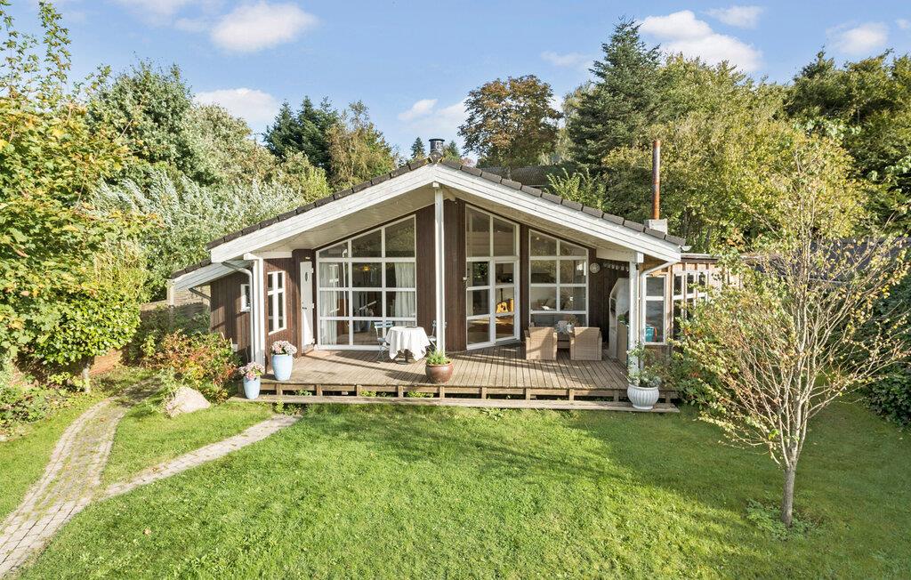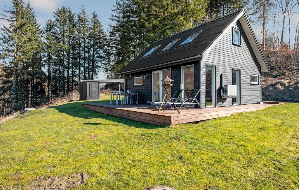 Smukt beliggende feriehus i skovrige omgivelser. Velkommen til dette moderne, lyse og pænt indrettede feriehus, som ligger ugenert på en skråning med skov omkring. Glæd jer til at sidde på terrassen med en kop kaffe og nyde solen og udsigten til de