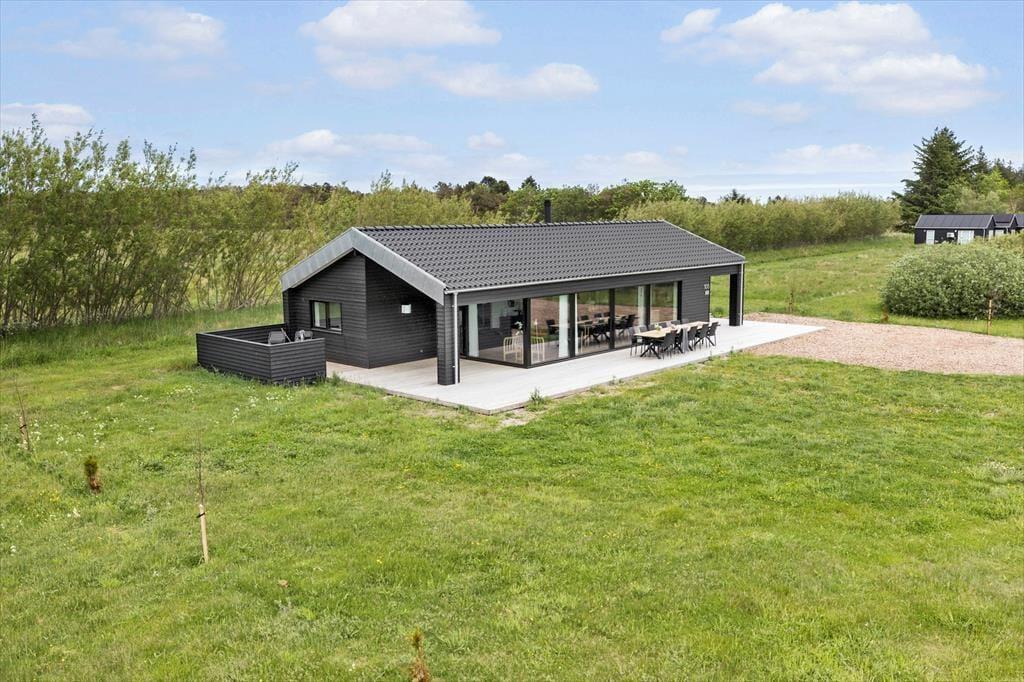 4,5Dette bjælkesommerhus, bygget i 2005, er beliggende på en smuk, lyngbeklædt klitgrund nord for Aalbæk i et lille sommerhusområde 150 m fra strand og vand. Der er udsigt til klitterne samt direkte adgang til stranden over klitterne. Til huset hører såvel