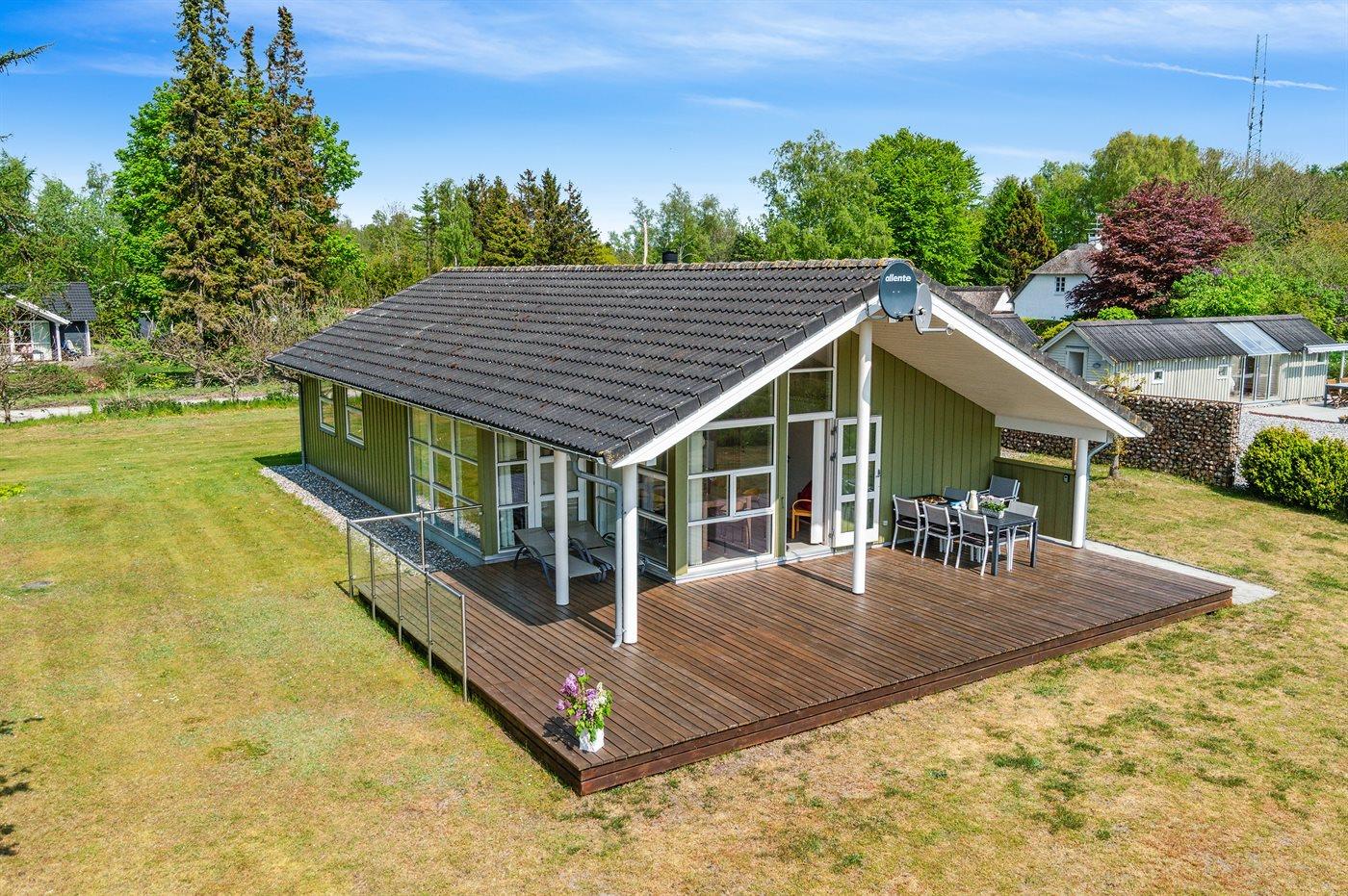 4,3Dette flotte og rummelige sommerhus ligger på en stor grund i et naturskønt område med gode aktivitetsmuligheder. Sommerhuset på 114 m2 er beliggende på en 1501 m² stor havegrund. Der er stor indkørsel, hvor der kan parkeres flere biler og der er
